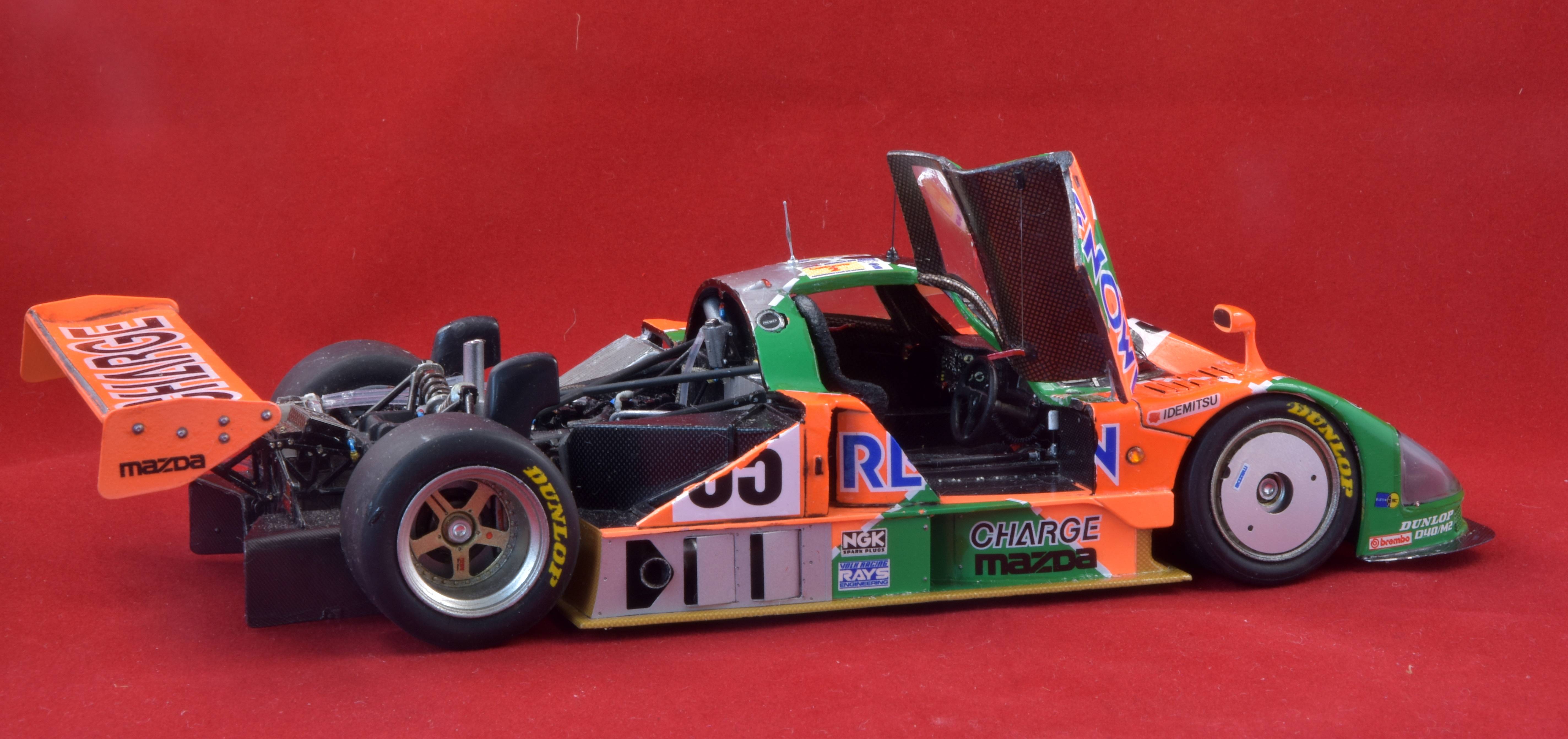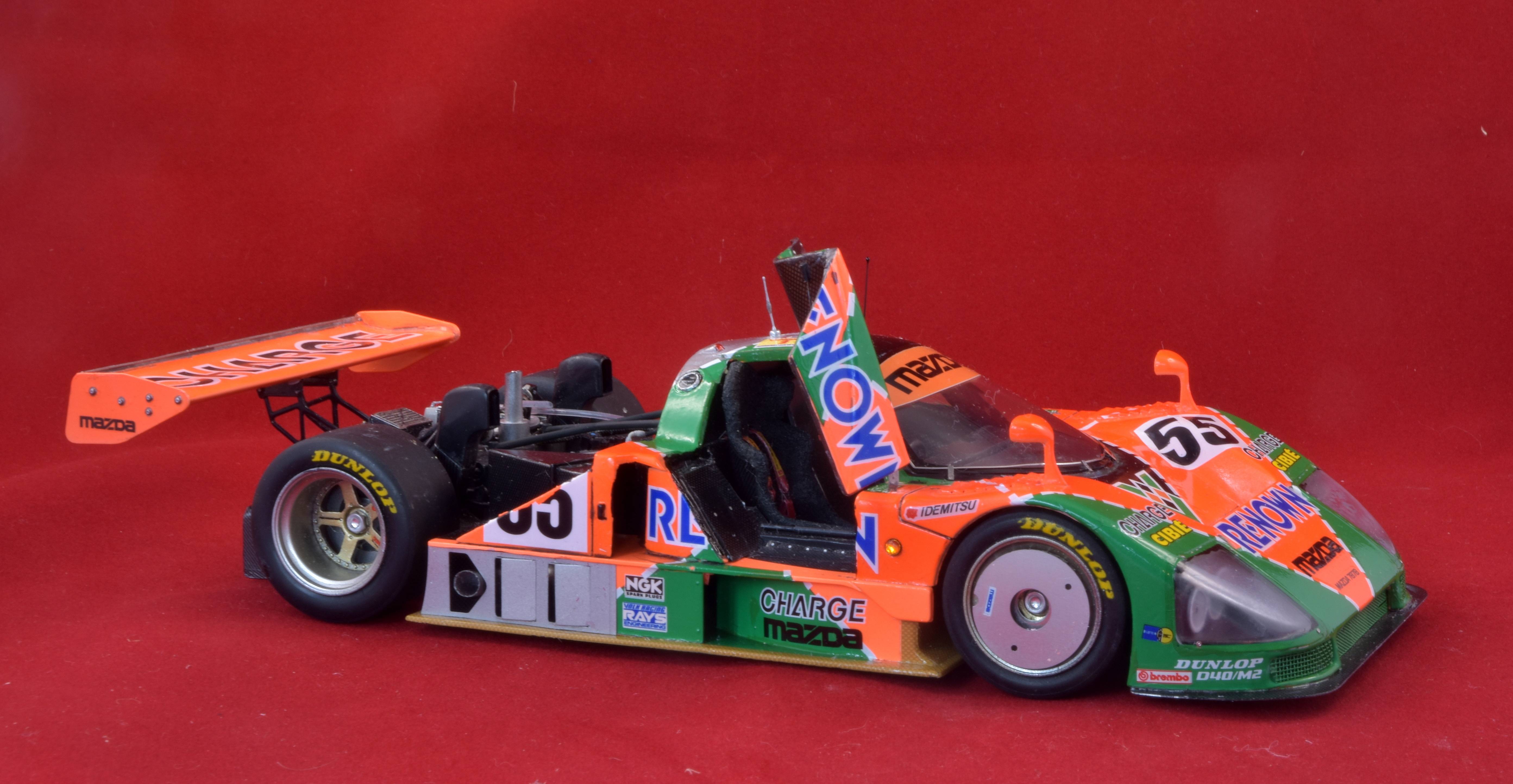 Tamiya’s 1/24 Mazda 787B. This is my favourite racing car, driven to victory by my favourite driver (Johnnie Herbert) at my favourite race. In 2011 I saw Johnnie’s demo run at Le Mans, and the car very much lived up to the legend. I’ve built this kit before, back in 1994 in the tiny kitchen of a tiny bedsit in Putney. All that survives is the windscreen wiper. I wanted to build another but it has long been out of production with these decals and eBay prices were ridiculous. I found this second hand for £16 (!) at a show in Stoke about 5 years ago. I remember physically shaking when I found it was an unstarted and complete kit. (It’s soon to be reissued, but it won’t be sixteen quid!)