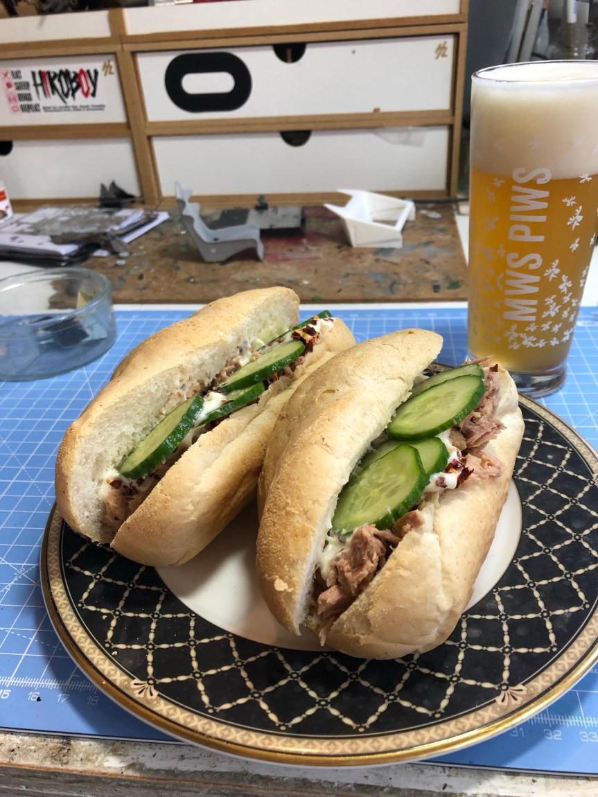Today is the first official latibulisation. There’s sandwiches, beer, MotoGP, and a 1/144 Vulcan in the new Work In Progress page.